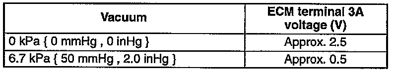 2. Apply vacuum to the fuel tank pressure sensor by using a vacuum pump. Measure the pressure at ECM terminal 3A.