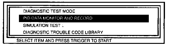 7. Select the "PID/DATA MONITOR AND RECORD" function on the NGS display.