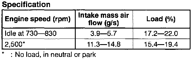 NOTE: The scan tool shows the mass air flow rate and load value.