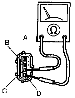 3. Check for continuity between throttle position sensor connector terminals C and D by using an ohmmeter.