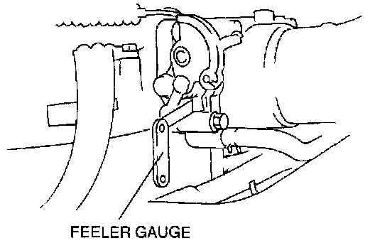 5. Insert a 0.50 mm (0.020 in) feeler gauge between the Throttle Adjusting Screw (TAS) and the throttle lever. Verify that there is no continuity.