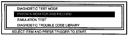 4. Select the "PID/DATA MONITOR AND RECORD function on the NGS display.