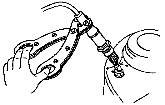WARNING: High voltage in the ignition device system can cause strong electrical shock. Avoid direct contact to the vehicle body during the following spark test.1. Remove the spark plug.