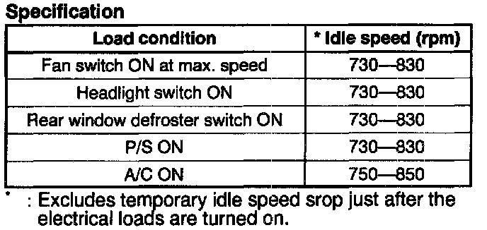7. Check the idle speed with the following load conditions.