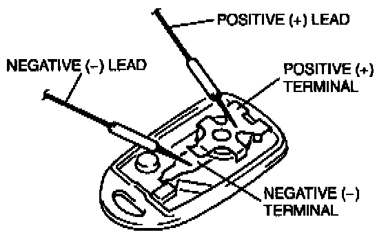 2. Connect the positive (+) lead of the voltmeter to the positive (+) terminal of the transmitter and the negative (-) lead to the negative (-) terminal.