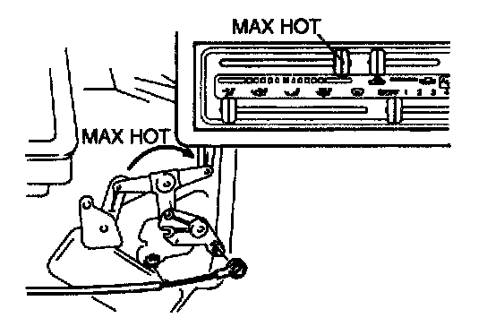 3. Set the air mix link to MAX HOT and clamp the air mix wire.