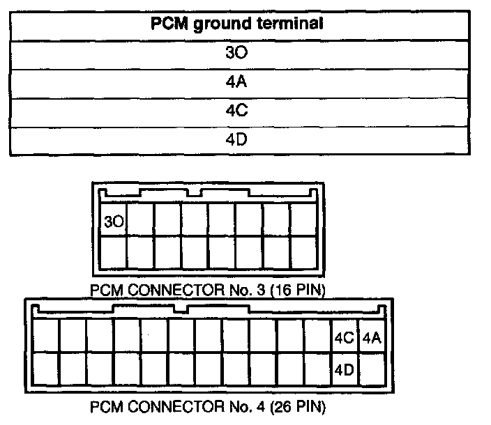 Inspect for continuity between the PCM ground terminals and body ground by using an ohmmeter.