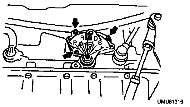 TRANSMISSION RANGE SWITCH ADJUSTMENT1. Remove the selector cable, manual shaft nut, and lever.