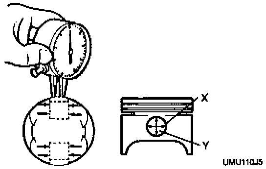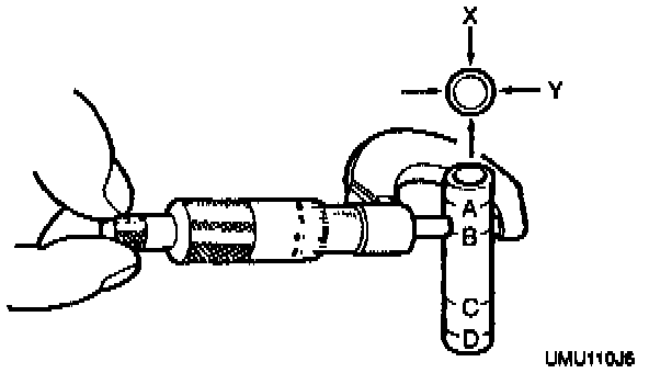 NOTE: Measure the piston pin diameter in X and Y directions at four points (A, B. C and D).