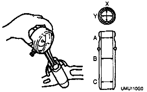NOTE: Measure the valve guide inner diameter in X and Y directions at three points (A, B and C) as shown in the accompanying image.