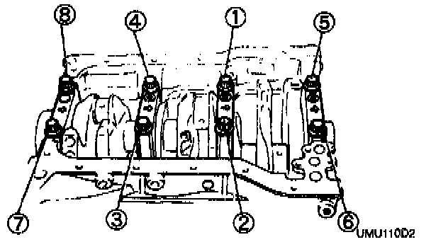 NOTE: Tighten the bolts in two or three steps in the order shown in accompanying image.