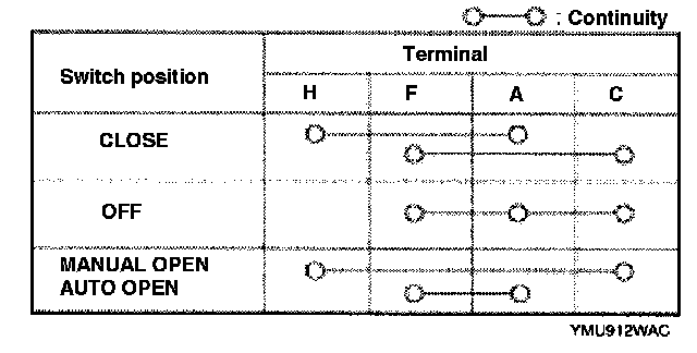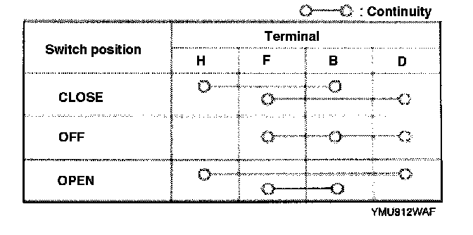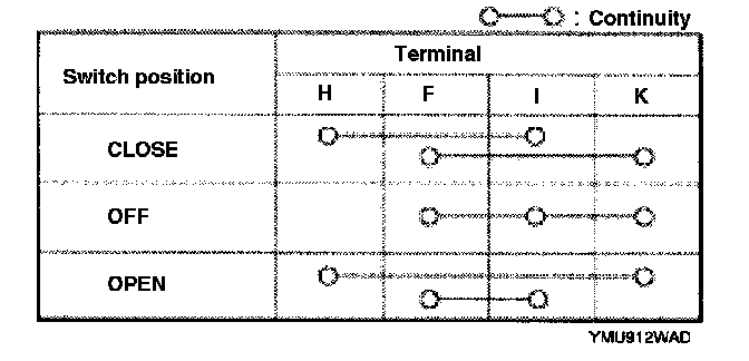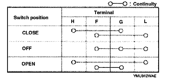 3. Inspect for continuity between the power window main switch terminals using an ohmmeter.