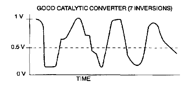 RATIO = 26 inversions (upstream HO2S inversions) + 7 inversions (downstream HO2S inversions) = 3.7 (good converter)