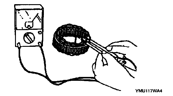 1. Inspect for continuity between the stator coil leads using an ohmmeter.