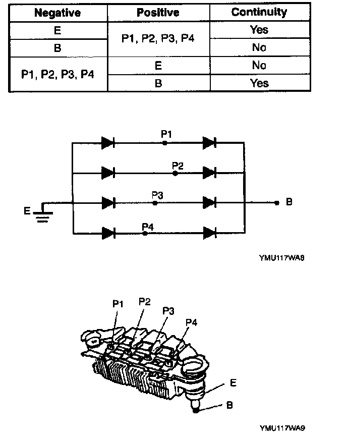 1. Inspect for continuity of the diodes using an ohmmeter.