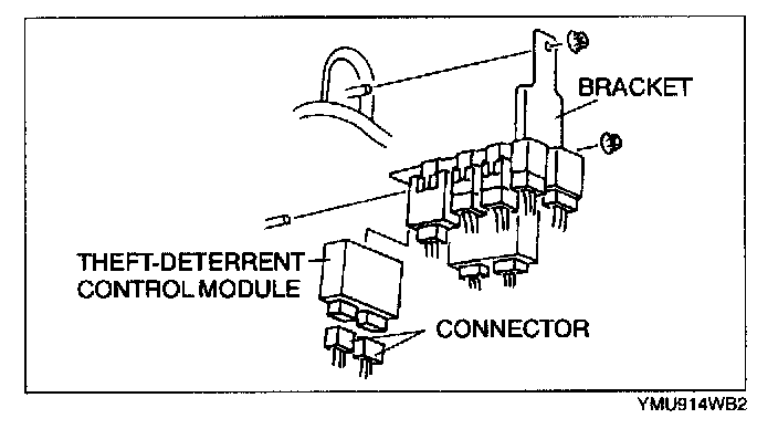 THEFT-DETERRENT CONTROL MODULE REMOVAL/INSTALLATIONNOTE: Because the lock section of the module is damaged easily, do not remove the module from the bracket unless replacement is necessary. Always perform an inspection of the theft-deterrent control module before removal.