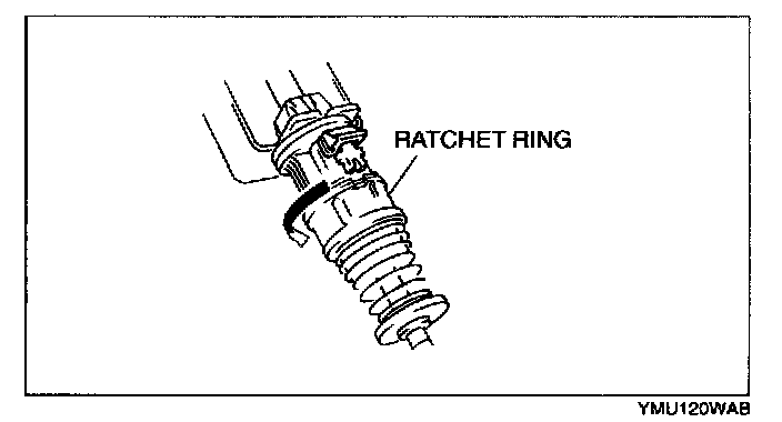 8. Turn the ratchet ring in the direction shown by the arrow to lock it.