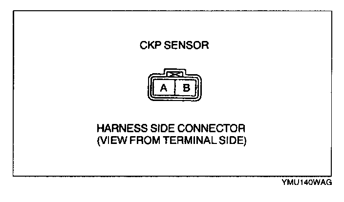 2. Measure the resistance between CKP sensor terminals A and B using an ohmmeter.