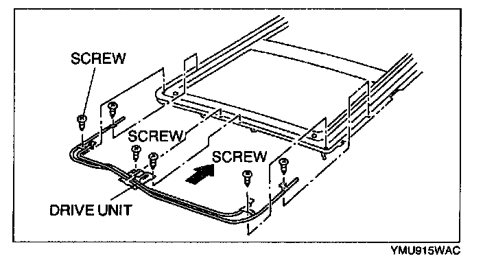 3. Slide the drive unit rearward, and install it to the sunroof frame.