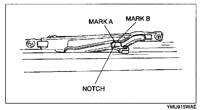 7. Move the guide by hand until notch comes between mark A and mark B.