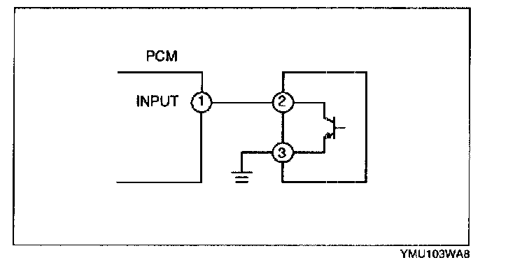 1. Measure the #1 PCM terminal voltage and confirm that it is at 0 V or 5 V when the ignition key at ON and the engine at idle.