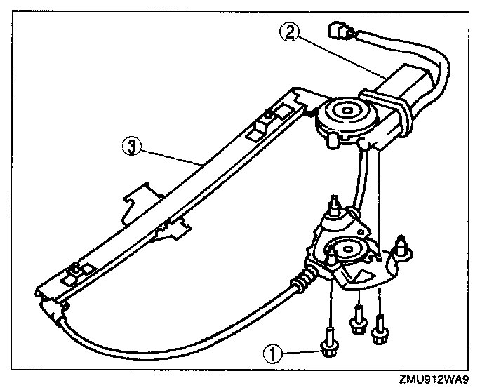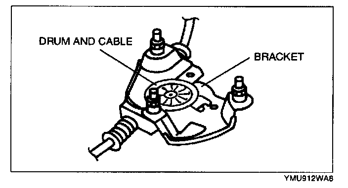 1. Hold the drum and the cable with the bracket to prevent them from being pulled out with the power window motor.