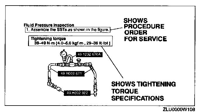 Inspection and adjustment procedures are divided into steps. Important points regarding the location and contents of the procedures are explained in detail and shown in the illustrations.