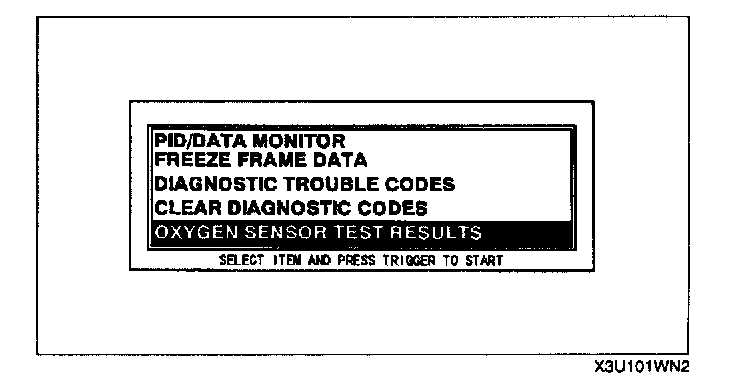 5. Move the cursor to OXYGEN SENSOR TEST RESULTS.