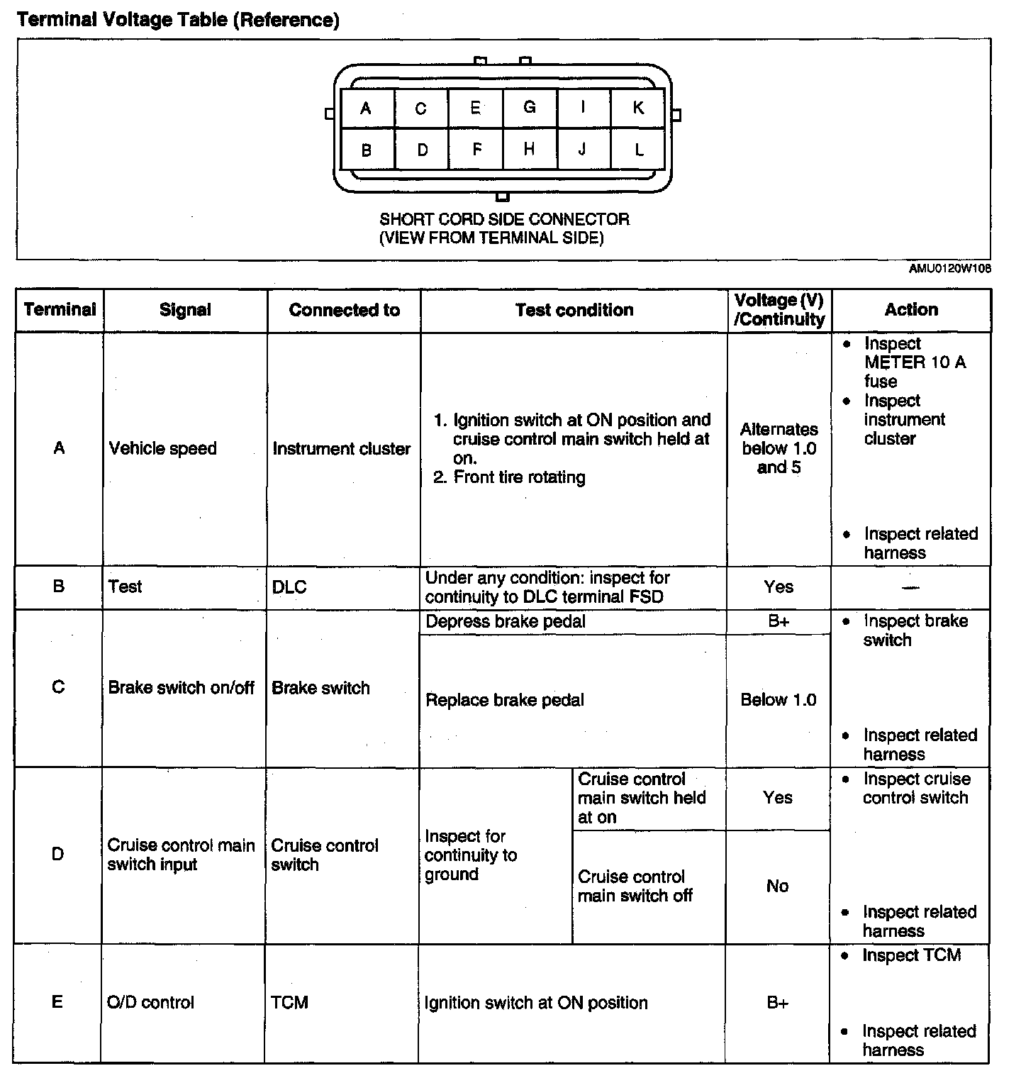 Terminal Voltage Table (Reference) - Terminal (A - E):