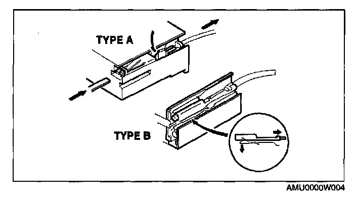 CAUTION To prevent damage to the terminal, wrap a thin wire around the lead before inserting into terminal.