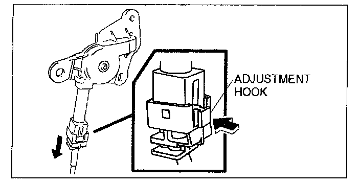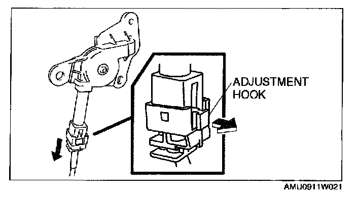 1. While pulling the front pulley cable fully, pull the adjustment hook.