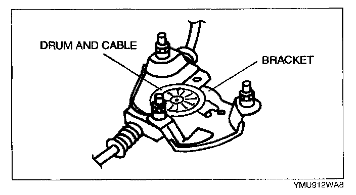 1. Hold the drum and the cable with the bracket to prevent them from being pulled out with the power window motor.