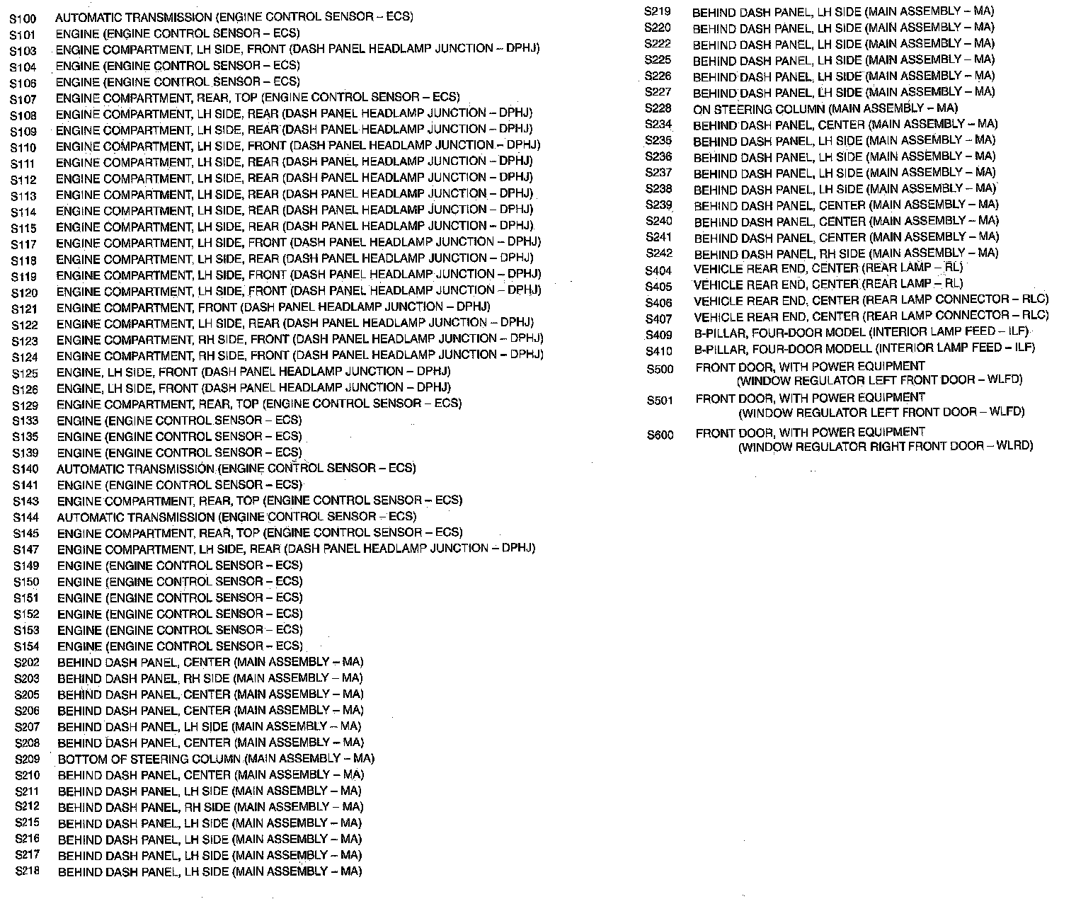 SPLICE LOCATION LIST:
