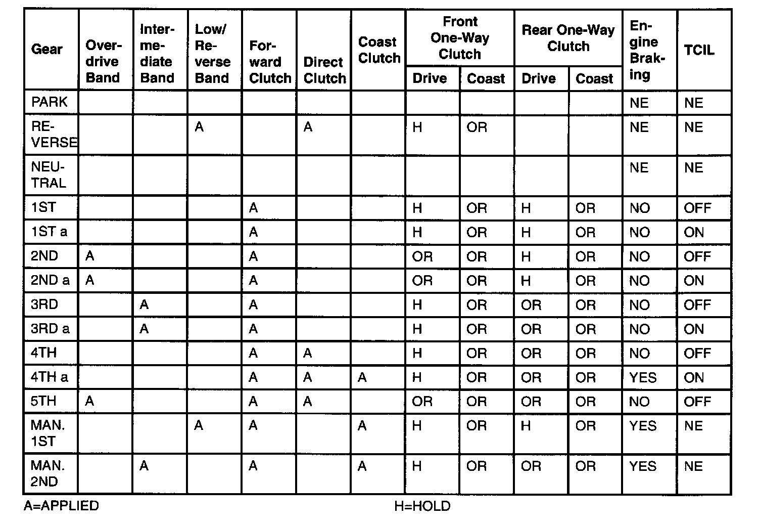 Band/Clutch Application Chart (5R44E 5R55E)