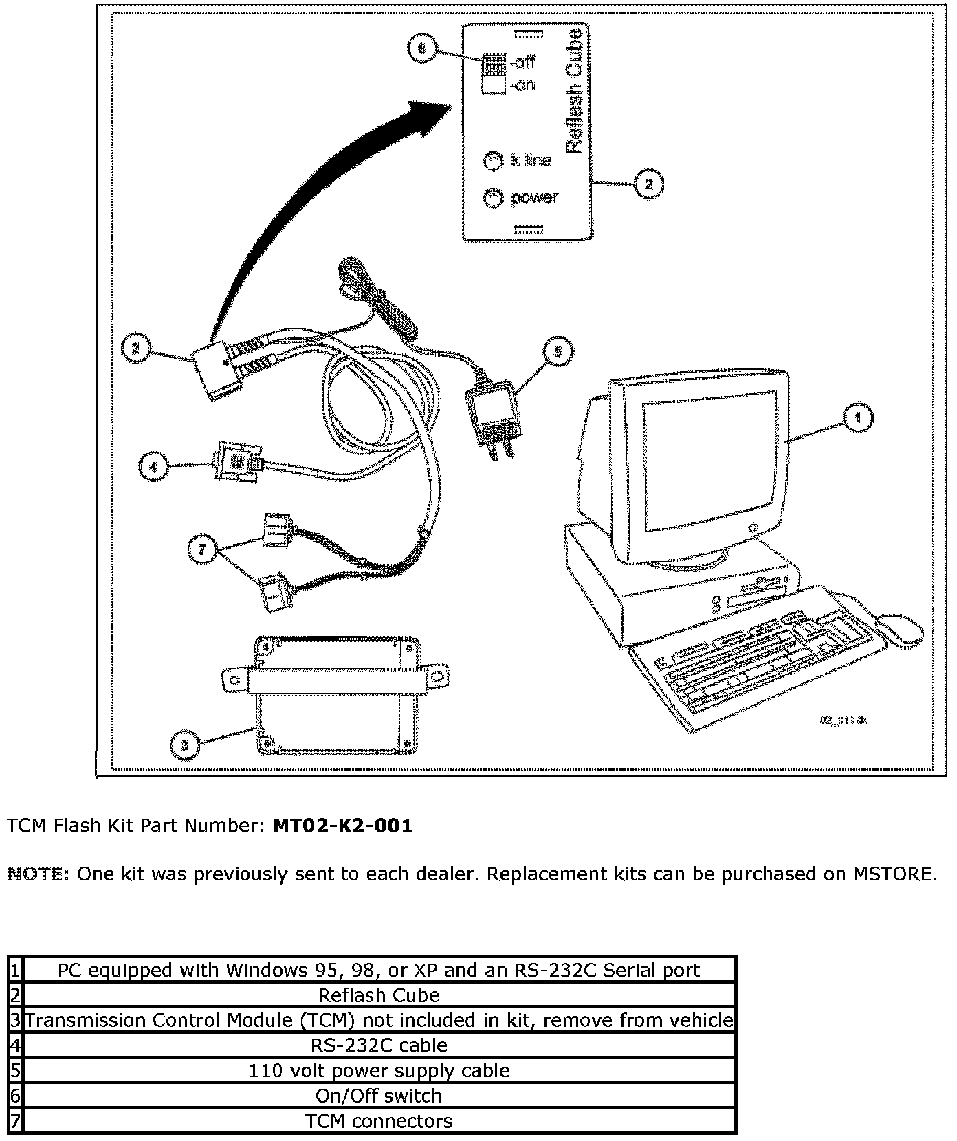 PROCEDURE 2: FIRST TIME TCM RE-FLASH:The figure shown identifies the TCM Flash Kit components.