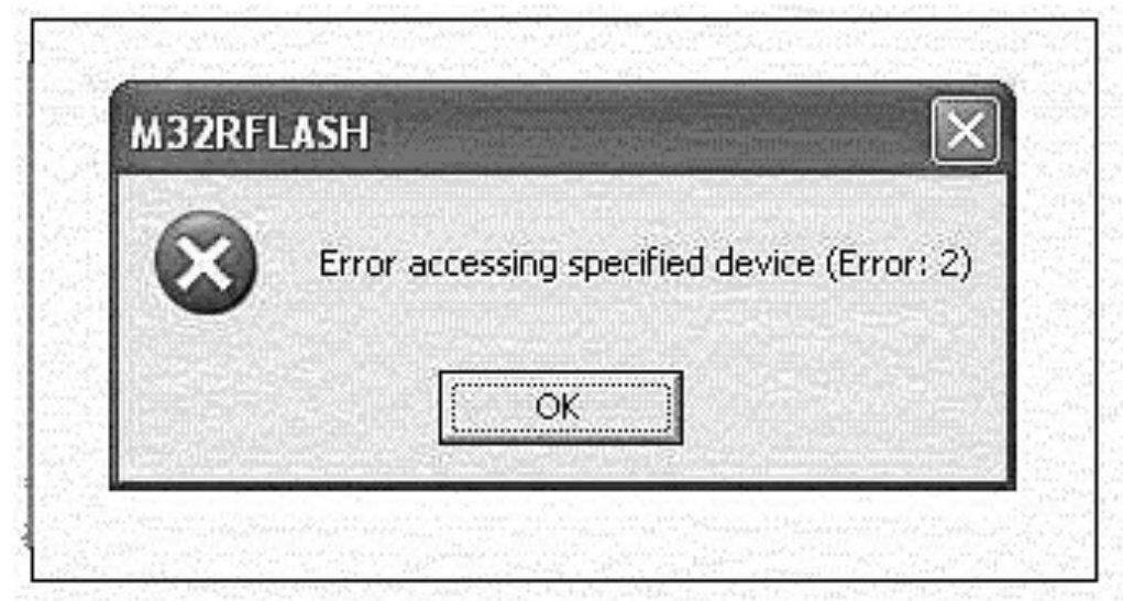If you receive the error shown or one similar to it, click "OK" and proceed to the next step. The program will continue to function. When the correct COM port is selected during the reflash procedure, this error will not come up again.