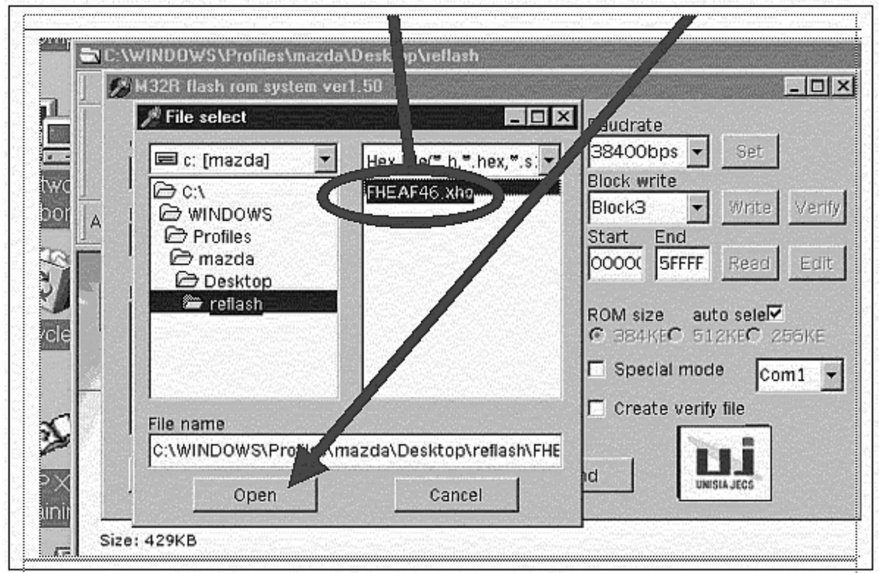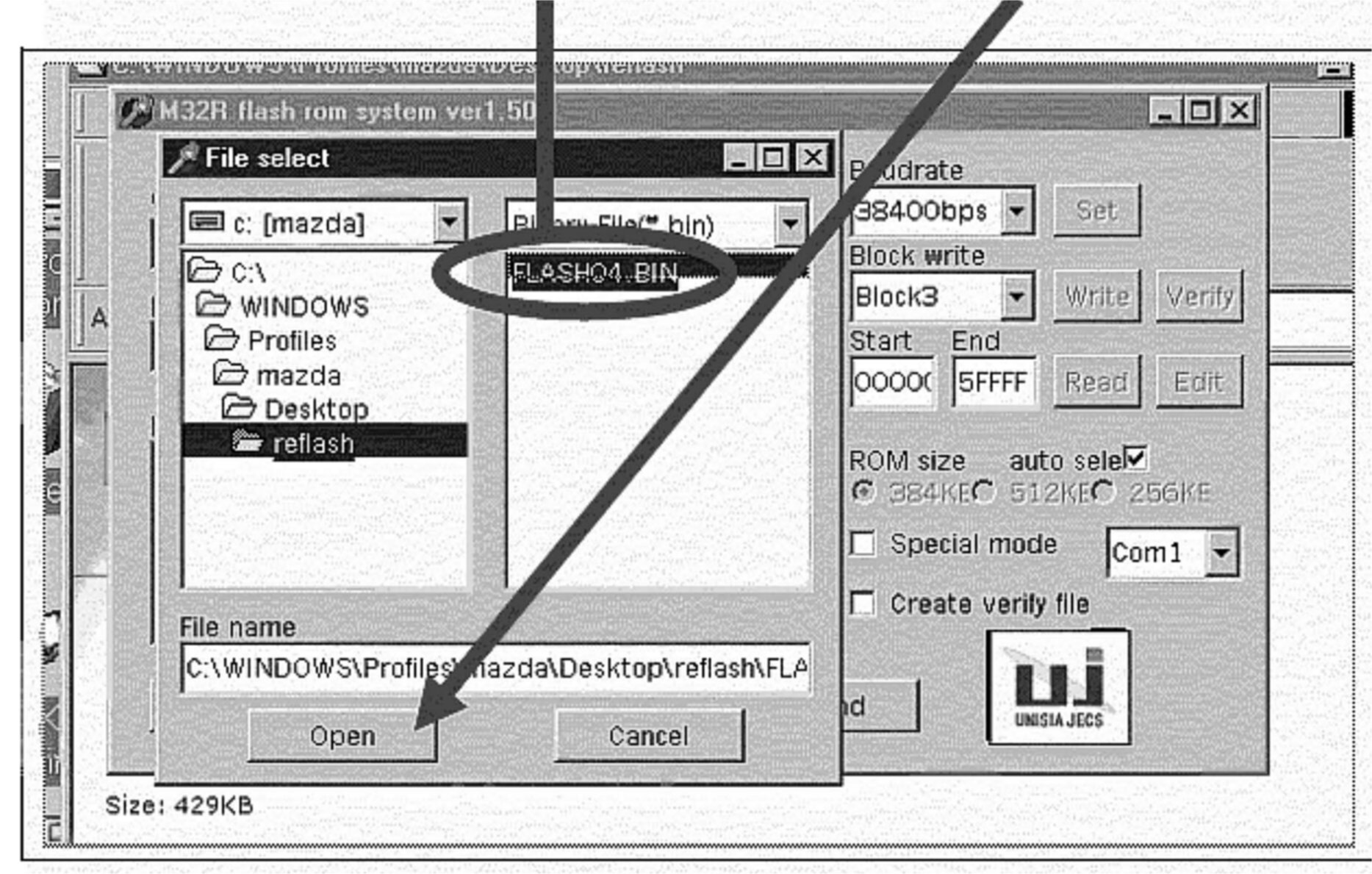 9. Select the program file "FLASH04.BIN", then select "Open".