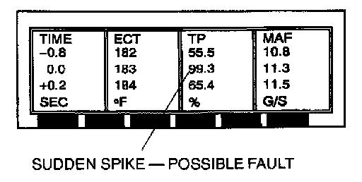 4. Table format: Scroll through the PID data while analyzing the information. Look for sudden drops or spikes in the values.