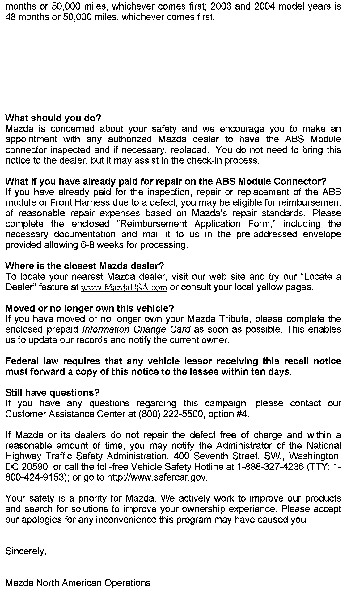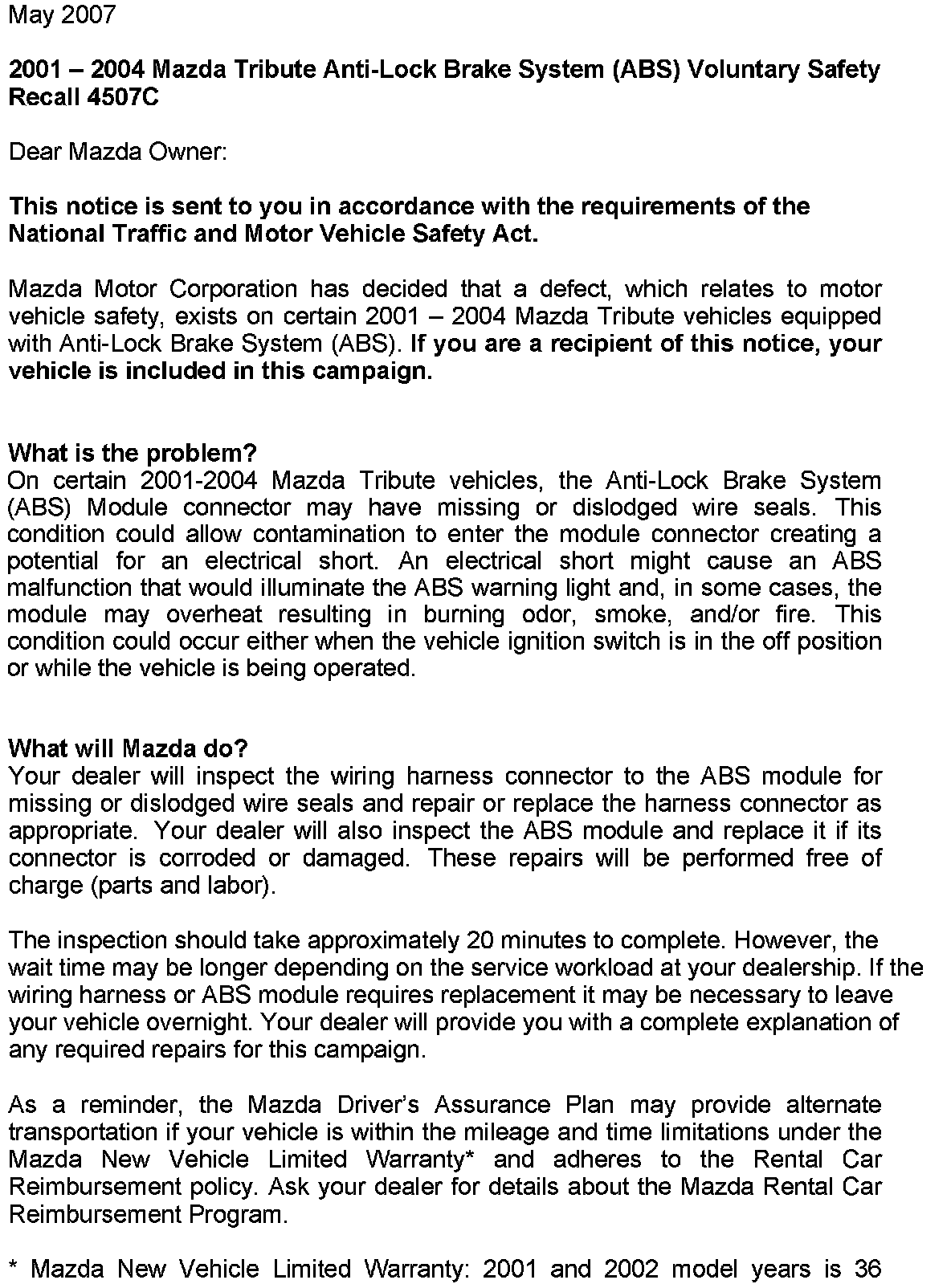 Recall - ABS Module Connector Defect