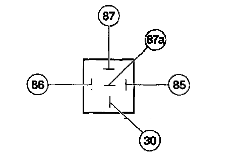1. Measure resistance between terminal 85 and terminals 86, 87, 87a and 30. If resistance is 5 ohms or less between terminal 85 and any other terminal, replace the relay. If resistance is greater than 5 ohms, go to step 2.