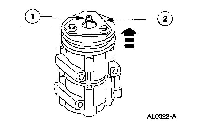 1. Thread an 8 x 1.25 mm bolt into the A/C clutch to force it from the compressor shaft.