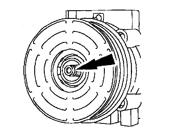 5. Measure and adjust the clutch air gap by removing or adding A/C clutch hub spacers.