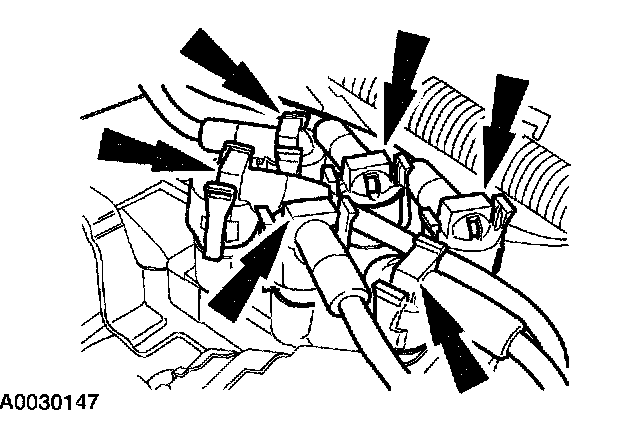 7. Open the spark plug wire separators and remove the spark plug wires.