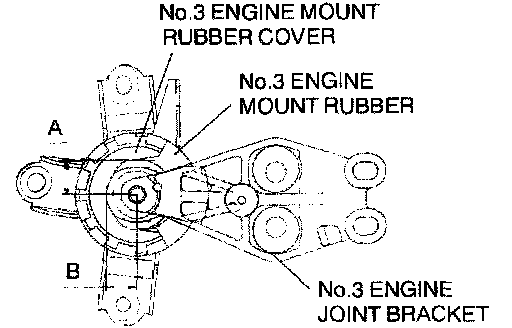 ^ If the clearances A and B of the No.3 engine joint bracket are out of specifications, engine vibration and noise can increase. Make sure that the clearances are within the specifications.
