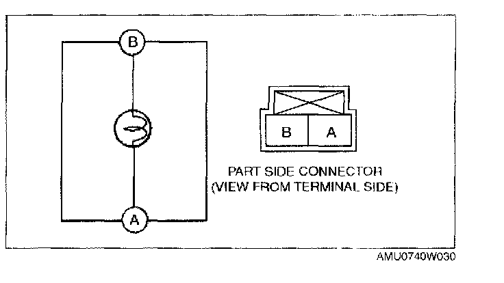 1. Connect the battery positive voltage to terminal B and ground to terminal A.