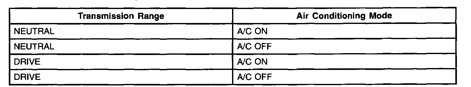 Once Keep Alive RAM has been reset, the engine must idle for 15 minutes (actual time varies between strategies) to learn new idle air trim values. Idle quality will improve as the strategy adapts. Adaptation occurs in four separate modes. The modes are shown in the shown table.