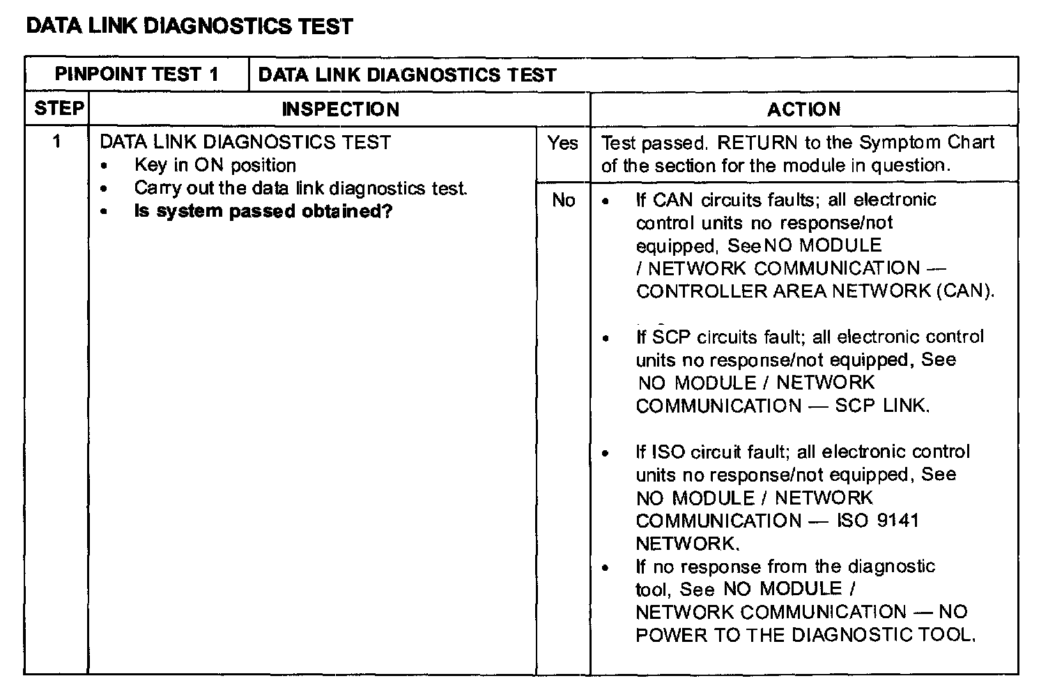 6. Go to data link diagnostics test. See DATA LINK DIAGNOSTICS TEST.