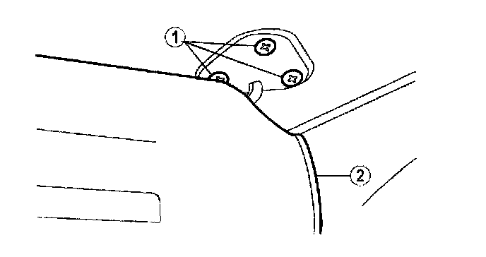 4. Remove the screws (1), sun visors (2) and disconnect connectors, if necessary.