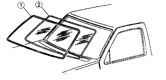 6. Remove molding (1) and windshield (2). See Windshield Removal Note.