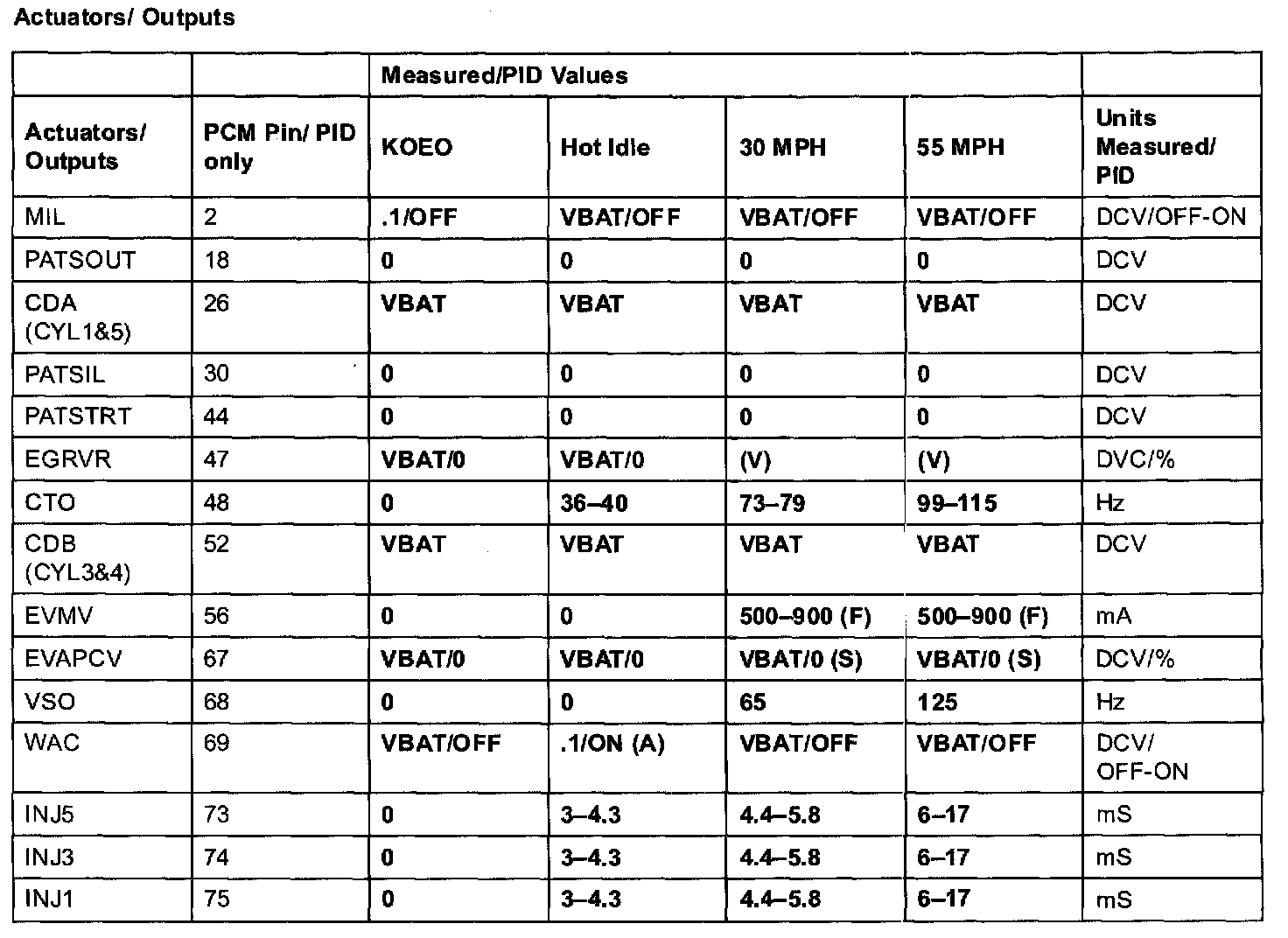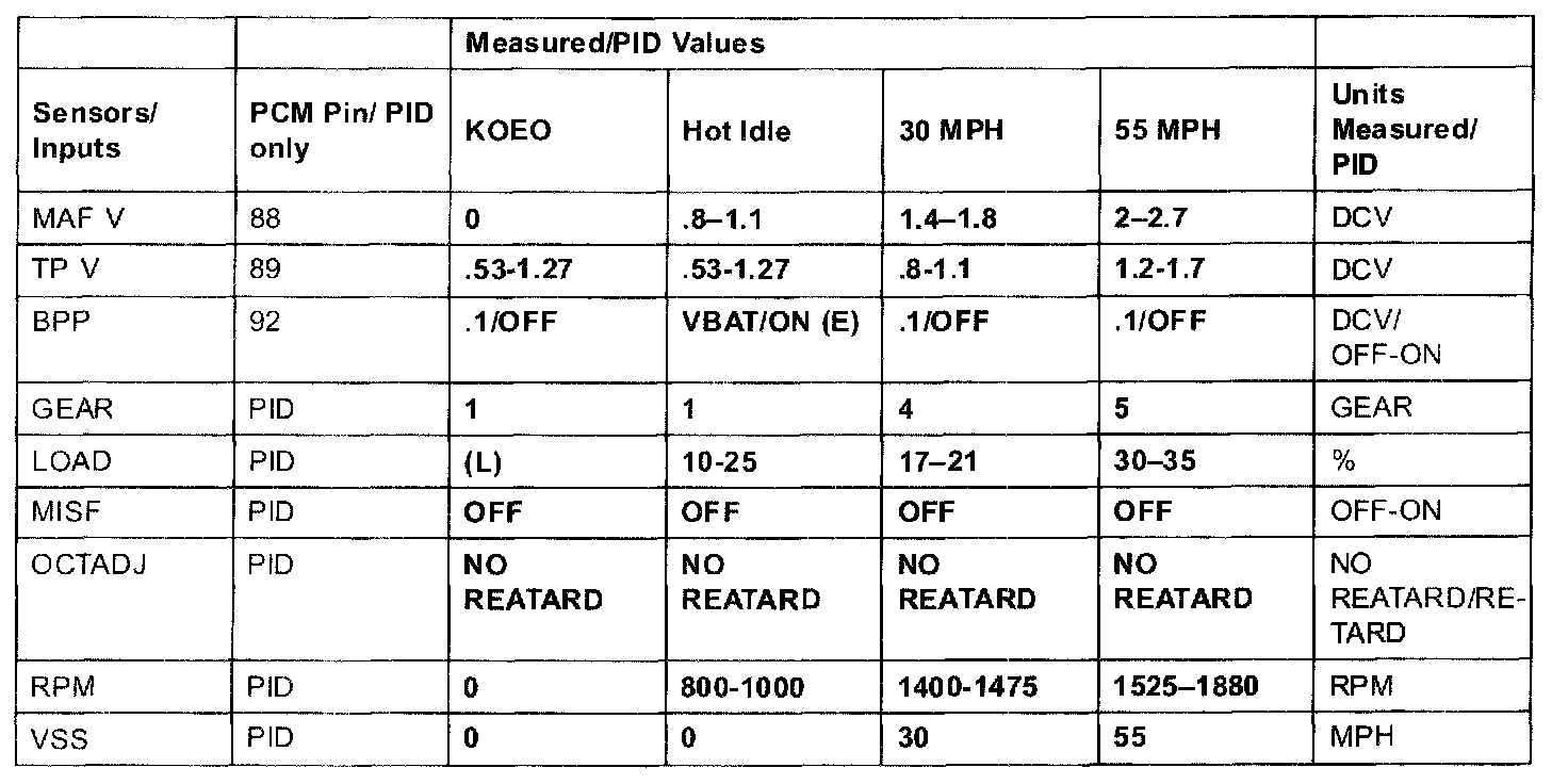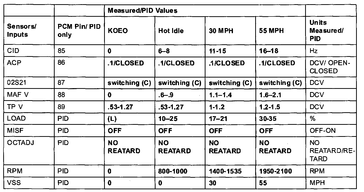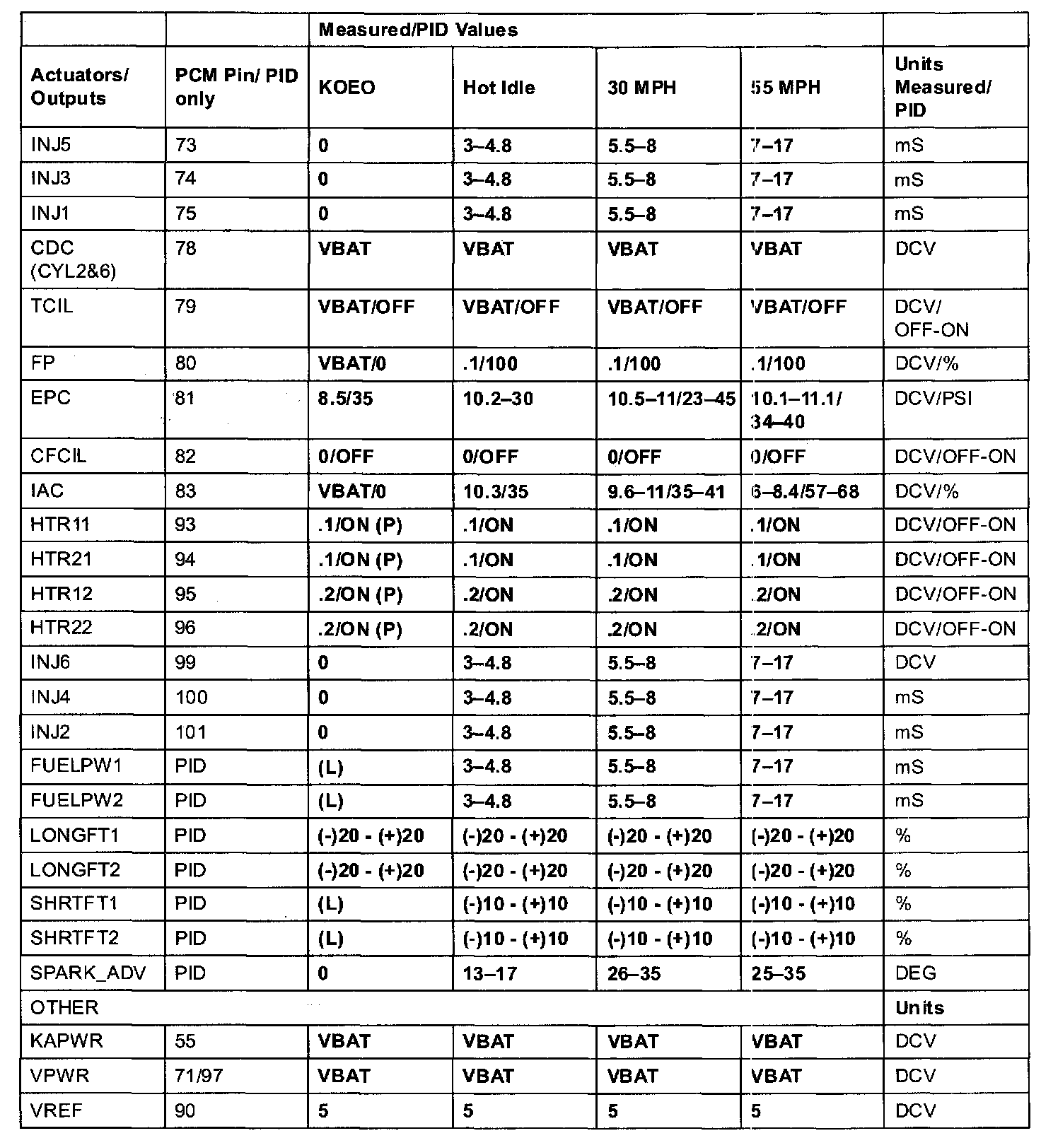 4.0L (M/T) Terminal Voltage (Reference)NOTE: All values shown may vary 20% depending on operating conditions and other factors. RPM values are axle and tire dependent.